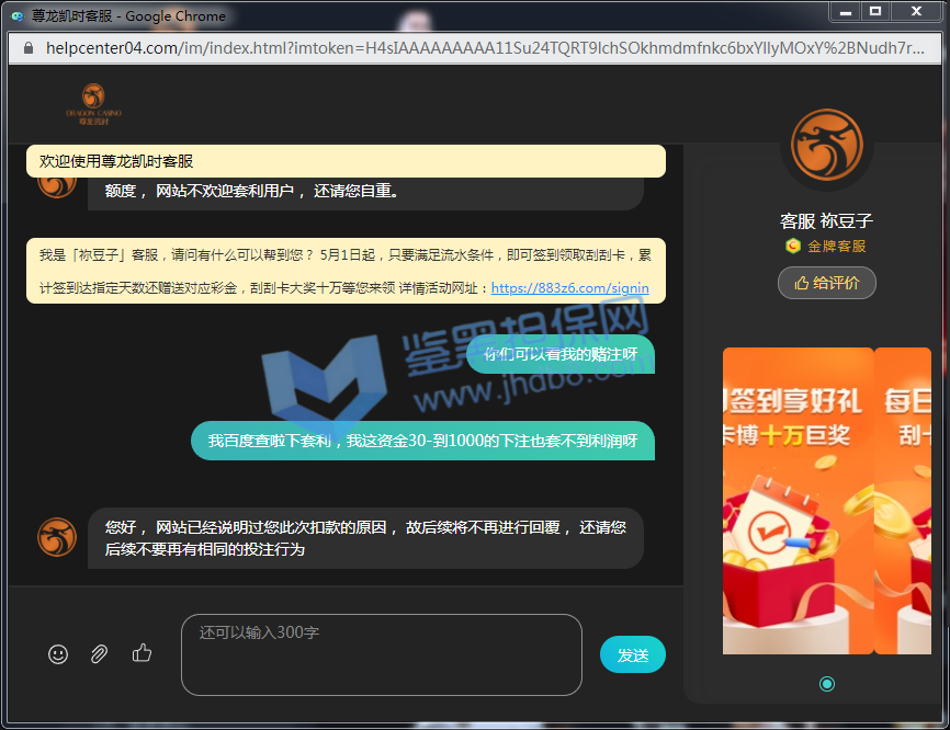 我之前一直在这个平台玩,玩啦快一年啦,一直存款出款都挺快的,所以就没有戒备心啦,都是2000到3000的充值,有输有赢,一直都很正常,有过一次赢啦没有给我结账,我问客服客服说是无效单子,那我都以为没有事就当没赌咯。只要平台稳定资金安全就好,直到今天才不给我出款。我前几天充值2000元。然后又输啦只剩800元啦,我就又充啦1600进去,然后去玩啦几把AG真人百家乐没有什么输赢感觉看不准就没有玩啦。后面吃完晚饭,我看到一个西班牙的足球。当时比赛快结束啦,比分1-1加时6分钟。我就下注500大2.5有5.16的赔率我感觉有球进,我下500大2.5.下进去过啦2分钟的样子进球啦。,赢啦2000多点,我账户就有4000多我就提款。因为有借网贷,我就提2000出来还网贷。一直没有到账我就刷新下网址。还有我充值的2000本金我没有提款,看到账户都是没有钱啦,我就问客服,客服说我是团伙套利,所有钱都不给啦.我就问什么是团伙套利,我当时都懵啦,我说实话我都不知道什么是套利。我就问客服什么是套利,他们也不说,就是说不给我,那我就百度查啦下什么是套利,说套利是什么对冲,那我就感觉我是被黑钱啦。因为我不存在套利的,有下投注都有投注记录的,所以不存在他们说的套利,就是在黑我钱。希望我鉴黑担保网能帮追回来,如果我是输啦我会认,愿赌服输。但这样做就不行。。希望我鉴黑担保网能帮追回来.在此拜托